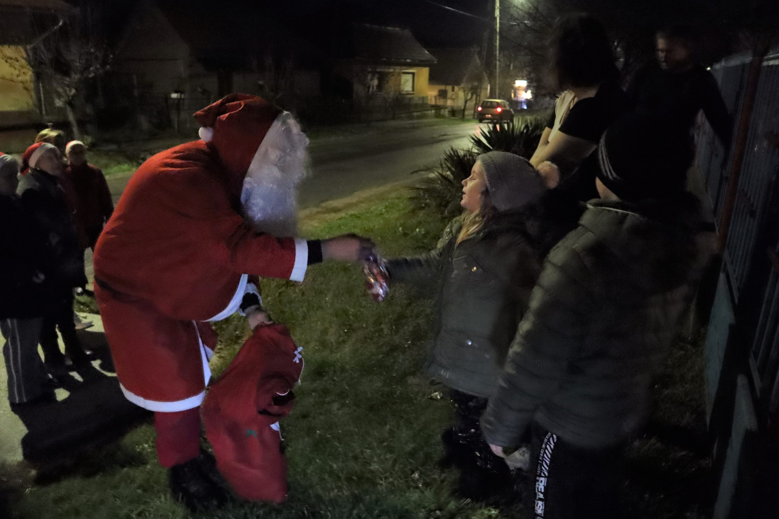 S a Télapó, a falubeliekkel ment házról – házra. Mindenhová bekopogtak, a gyerekek itt-ott kicsit megszeppenve, de örömmel fogadták a Télapó bácsit. Néhányan még szavaltak, énekeltek is a Télapó bácsinak.